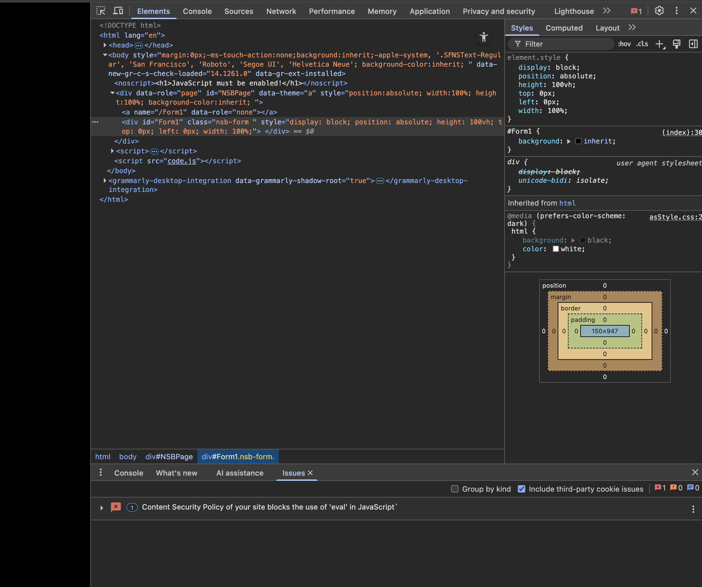 We are runnning an API call and are getting this error back - it implies there is javascript code in our Appstudio app that is being red-tagged. The ‘bad’ code elements are not in our code - so we wondered if it was in the code generated by Appstudio. Thoughts?